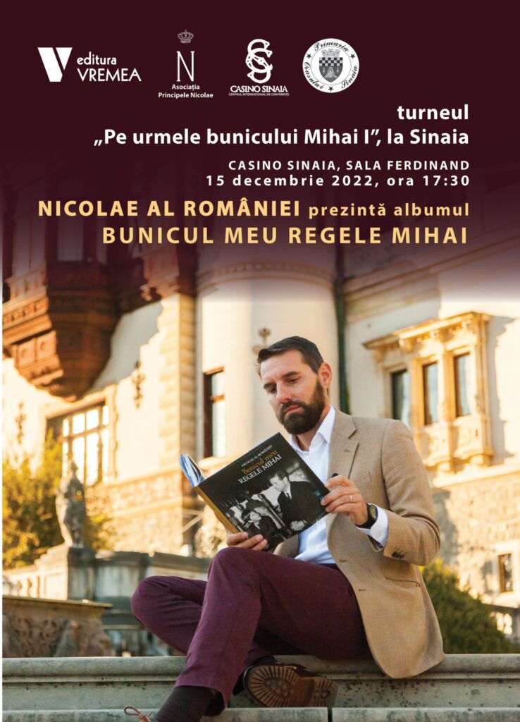 09/12/202209/12/2022 boho Prezentarea albumului “Bunicul meu regele Mihai’ Printul Nicolae: În data de 15 decembrie voi prezenta albumul „Bunicul meu Regele Mihai” la Sinaia, un oraș cu o mare simbolistică pentru familia mea. Vă invit să îmi fiți alături la Casino, Sala Ferdinand, de la ora 17.30, pentru a depăna împreună amintiri despre ultimul monarh al României!